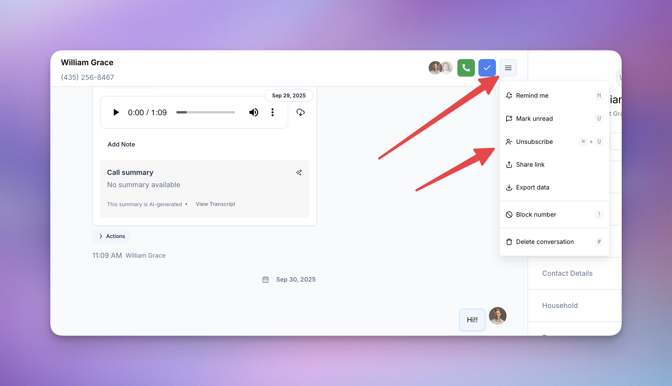 - Open the conversation with the contact